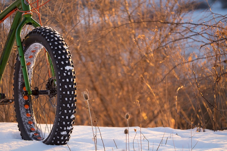 I am always happy to get someone on a bike, its been a lifelong goal of mine even when I wasn't in the industry. The joy I get from seeing someone who is stoked on their bike far outweighs much in my life aside from getting out on a bike and getting lost. Mike contacted us about going the custom route with a budget, and we were happy to oblige, we even managed to put a Chris King headset on it and some Jeff Jones bars. I you can dream it, we can build it. I waited until sunset to shoot Mikes bike and in an undisclosed location I was able to find some beautiful natural light. This Salsa Cycles Mukluk is built with a mix of SRAM component, 45NRTH VanHelga tires, set up tubeless on Surly Rolling Daryls (yep we do this a lot). Keeping with the orange and green theme we used orange housing, a Mango Chris King headset and orange RaceFace cranks boots (these are excellent out here and keep the rocks from damaging cranks) Mikes preference for Jones bars is something a fair amount of riders prefer on rigid bikes (myself included). Enjoy the photos, for more info on this bike check here.